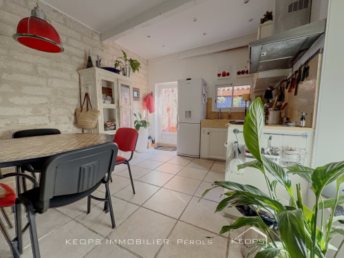 KEOPS IMMOBILIER : En plein cœur de la commune de Pérols, à proximité immédiate des commerces et des écoles, venez découvrir cette charmante maison de village entretenue de 84 m², idéale pour une vie de famille. Elle se compose, au rez-de-chaussée, d’une entrée, d’une pièce de vie climatisée de 27 m² comprenant un séjour et une salle à manger avec cheminée, ainsi qu’une cuisine ouverte aménagée et équipée. L’ensemble s’ouvre sur une véranda de 16 m², donnant accès à un jardin exposé sud-est de 32 m², agrémenté de deux cabanons. Ce niveau est également complété par une salle d’eau, un WC indépendant, une buanderie, ainsi qu’un garage partiellement aménagé de 20 m² (pouvant retrouver son usage de garage). À l’étage, vous trouverez trois chambres, une salle d’eau avec WC, ainsi qu’une véranda et une terrasse, toutes deux exposées sud-est. La maison est globalement bien entretenue : la façade a été récemment rénovée, la toiture ainsi que l’isolation sous toiture sont neuves. Les menuiseries sont en double vitrage PVC avec volets PVC. L’installation électrique est entretenue. Dans l’ensemble, le bâti est en bon état général. Quelques touches de personnalisation permettront de révéler tout le potentiel de ce bien et d’en faire votre nouveau cocon ! Les informations sur les risques auxquels ce bien est exposé sont disponibles sur le site Géorisques : www.georisques.gouv.fr