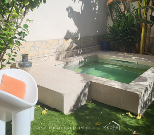 EXCLUSIVITE KEOPS IMMOBILIER PEROLS : Dans le coeur de ville de Pérols à proximité des commodités, écoles, commerces et tramway, venez découvrir cette jolie maison de village pleine de charme, en excellent état. Fonctionnelle et contemporaine, elle offre une surface de 93m², répartie sur 2 niveaux. Au rez-de-chaussée une pièce de vie lumineuse vous accueille, ouverte sur un patio de 35m² ombragé et son bassin, complétée par une vaste cuisine aménagée et équipée ainsi qu'un espace repas. À l’étage, un palier dessert trois chambres lumineuses, une salle de bains, un WC indépendant et de nombreux rangements. Le confort est au rendez-vous grâce à la climatisation réversible à chaque niveau et aux menuiseries récentes optimisant la performance énergétique du logement . L'extérieur intimiste vous permettra de profiter des journées ensoleillées et de vous rafraichir sans vis à vis. Située dans une rue paisible, cette maison est un véritable coup de cœur, alliant cachet de l’ancien et prestations actuelles. Une opportunité rare à Pérols ! Les informations sur les risques auxquels ce bien est exposé sont disponibles sur le site Géorisques : www.georisques.gouv.fr