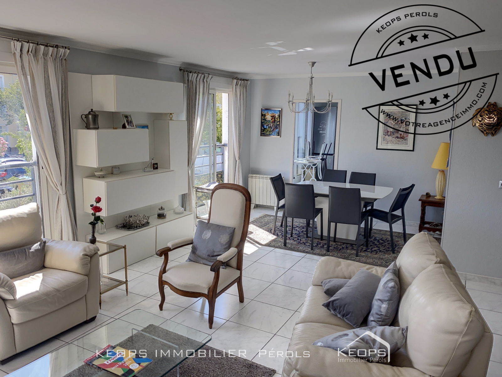 VENDU ! Au centre de Pérols un superbe appartement situé au 1er étage d'une petite copropriété avec ascenseur. Proche de toutes commodités, le bien d'une surface habitable de 77m2 dispose d'une entrée, d'un séjour lumineux de 31m2 donnant sur une loggia de 11m2 environ, d'une cuisine aménagée et entièrement équipée et d'un dégagement amenant à deux chambres avec placard, une pièce d'eau et un WC indépendant. En bon état, cet appartement dispose de fenêtres en PVC double vitrage avec volets roulants électriques, de la climatisation réversible et d'un garage en sous sol de 13m2 environ. Vous souhaitez vendre votre bien ? Contactez Keops !